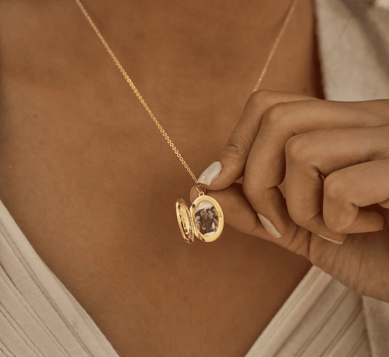 Chérissez vos précieux souvenirs avec ce magnifique collier médaillon photo gravé . De forme ovale élégante et fini en or 18 carats ou en argent sterling, ce bijou personnalisé contient un texte gravé et une photo, ce qui en fait un souvenir idéal.
