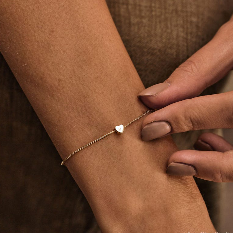Célébrez les moments précieux de la vie avec un bracelet personnalisé, créé spécialement pour elle. Ce bracelet minimaliste à breloques cœur est un cadeau touchant qui ravive les souvenirs et symbolise l'amour. Que ce soit pour une mère, une fille, une amie ou pour vous-même, il allie parfaitement simplicité, tendresse et élégance au quotidien.